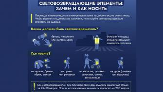 В тёмное время суток пешеходы и велосипедисты становятся практически незаметными на дороге. Чтобы водители могли вовремя вас увидеть и избежать опасной ситуации, важно использовать световозвращающие элементы на одежде и аксессуарах.